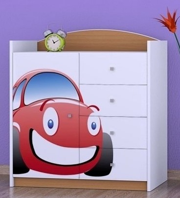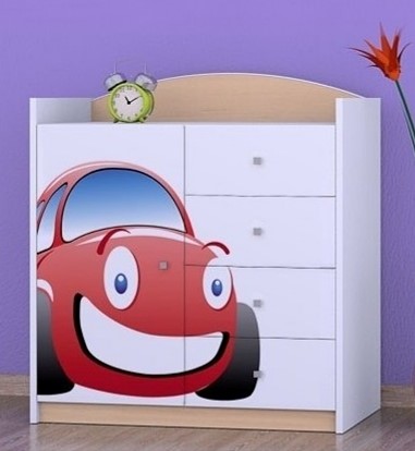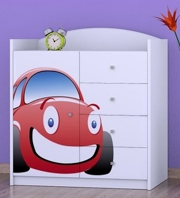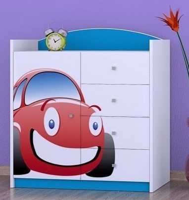 Komoda do dětského pokoje se 4 šuplíky a dvířky Auto