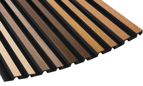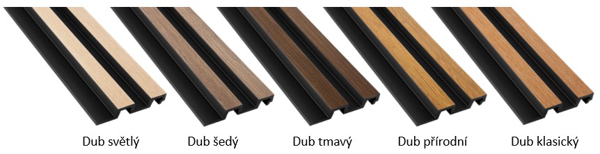 Lamelový obklad z tvrdého polymerového plastu nabízíme v pěti ostínech dřevodekoru.