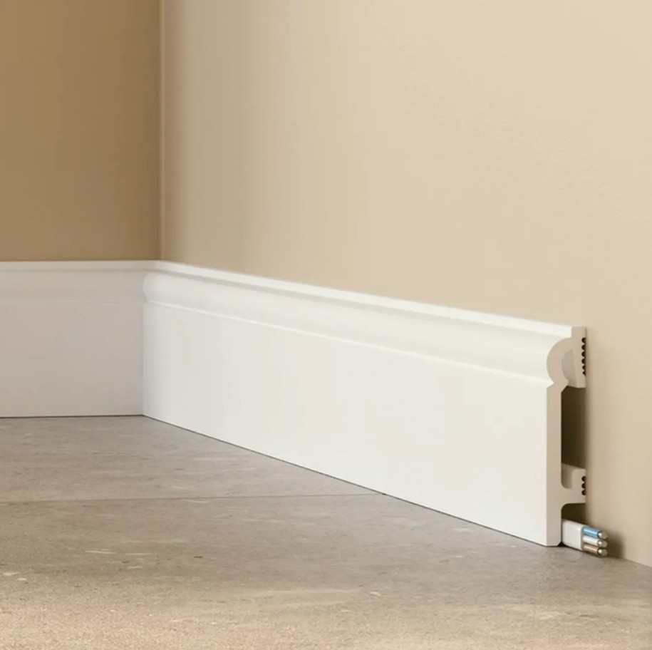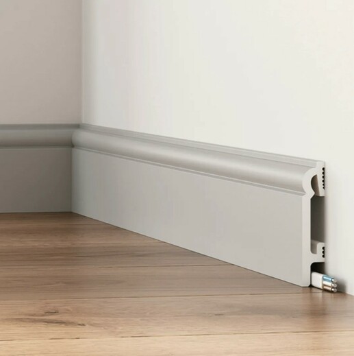 TVAROVANÁ soklová lišta je moderní elegantní nástěnný profil připravený k přímé instalaci na zeď.