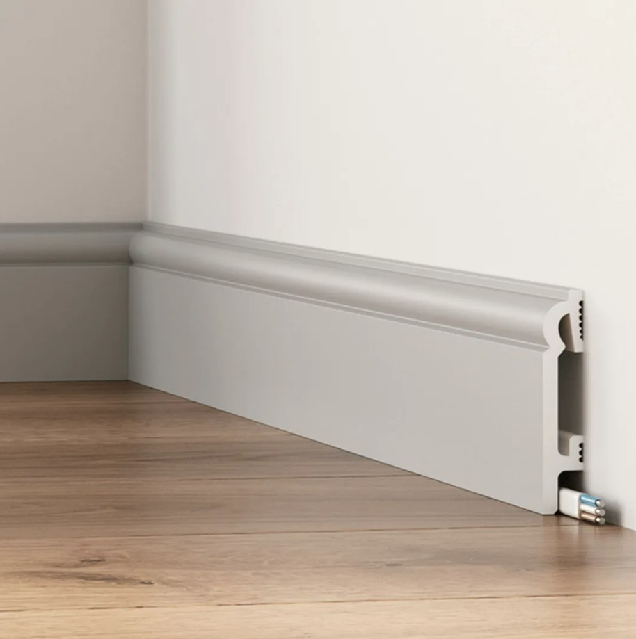 TVAROVANÁ soklová lišta je moderní elegantní nástěnný profil připravený k přímé instalaci na zeď.