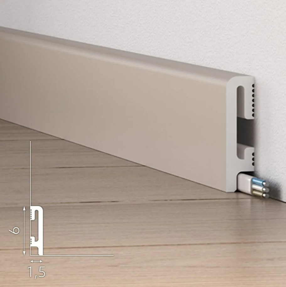 Soklová lišta o rozměrech je moderní nástěnný profil připravený k přímé instalaci. Vyrobena s využitím technologie UltraHDCore®, odolného , vysoce kvalitního polymeru s nanominerálními přísadami – je extrémně odolná vůči mechanickému poškození , zcela vodotěsná, neobsahuje žádné škodlivé látky. Lišta je potažena matným, odolným nátěrem , který ji chrání před poškrábáním a promáčknutím. Soklová lišta má prostor pro skrytí kabelů. Lištu lze čistit za mokra nebo vysávat. Není třeba natírat!